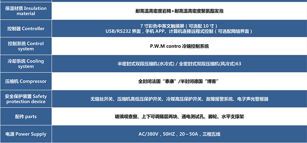 • 兩廂式冷熱沖擊試驗箱型號命名及參數表